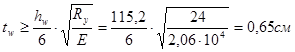 - для стенок центрально-сжатой колонны двутаврового сечения: