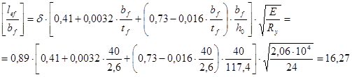 Компоновка сечения поясов и стенки должна выполняться с учетом обеспечения их местной устойчивости: