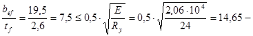 Проверка местной устойчивости поясов и стенки прокатных балок не требуется, поскольку она обеспечивается их толщинами.