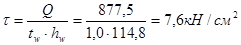 Также проверяется на срез стенка колонны в месте прикрепления к ней ребер: