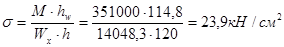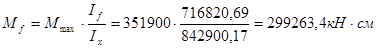 Определяем максимальное горизонтальное усилие от изгибаемого момента, действующего на каждый крайний, наиболее нагруженный болт: