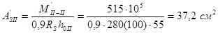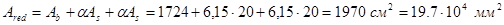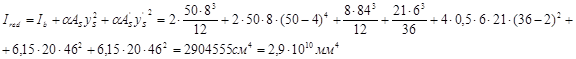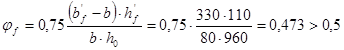 Нейтральная ось проходит в пределах ребра, поэтому расчёт производим с учётом тавровой формы сечения.