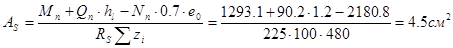 Сечение арматуры в средних блоках арки определяем по наиболее невыгодной комбинации усилий. В сечениях 4 и 5 действуют практически равные моменты, однако значение продольной силы в сечении 5 меньше. Следовательно