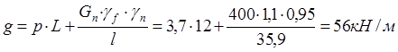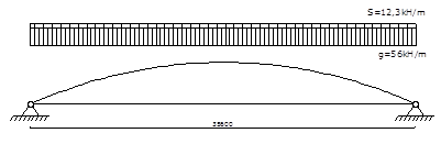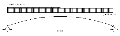 Выполняем расчёт наклонного сечения, идущего от грани опоры арки. Условно считаем всю нагрузку на верхний пояс арки равномерно распределённой.