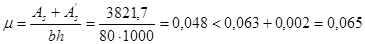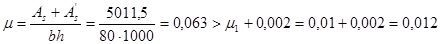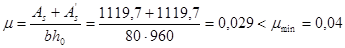 Т.к. полученный коэффициент армирования меньше нормируемого