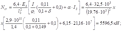 Условная критическая сила для элемента двутаврового сечения без предварительного напряжения: