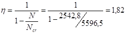 Определяем коэффициент увеличения начального эксцентриситета с учетом двутавровой формы сечения.