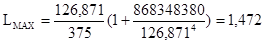 Далее, по формуле (2) вычисляется наибольший пролет: