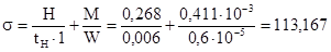 , без учета растягивающей силы H: