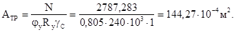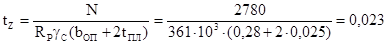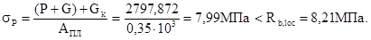 Проверяем достаточность размеров плиты в плане расчетом из условия смятия бетона под плитой. Назначаем класс бетона фундамента В 12.5. Расчетное сопротивление бетона смятию при коэффициенте условия работы ![]()