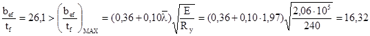 В соответствие с табл. 38 СНиП II – 23 – 81* при толщине плиты 32 мм минимальный катет шва равен kf min =8 мм. Принимаем kf =13,5 мм.