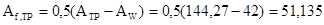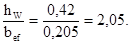 где а=0,5(L-h)=0,5(0,65-0,448)=0,101 м; b=bf =0,42 м.