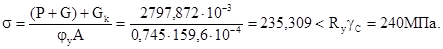 Проверяем бетон на смятие под плитой базы: