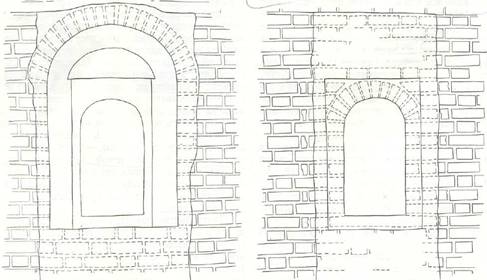 заполнения целым числом ложков и тычков имеющегося пролома и т. п. Необходимо также проверить, уложены ли кирпичи по краю пробивки перпендикулярно поверхности стены или же под углом к ней, что может оказаться свидетельством существования здесь древнего проема с трапециевидной в плане амбразурой.