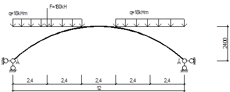 Дана арка складається із одного криволінійного елементу, який опирається на нерухому основу за допомогою чотирьох опорних в’язей (на дві шарнірно-нерухомі опори) і є геометрично незмінна.