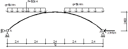 Для заданої арки без затяжки розпір Х1 обчислюється з умови, що ЕА зат = ∞.
