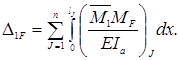 Таким чином, визначимо переміщення, де прикладене невідоме зусилля Х1 від кожного виду заданного навантаження.
