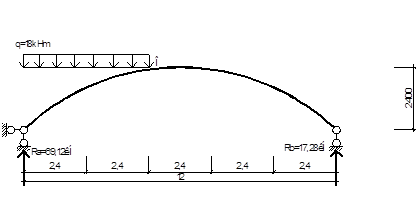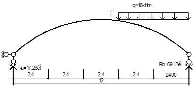 Далі проводимо аналогію – задаємось аркою такого самого прольоту, як і арка і з таким же навантаженням та визначаємо для неї внутрішні зусилля в кожному перерізі.
