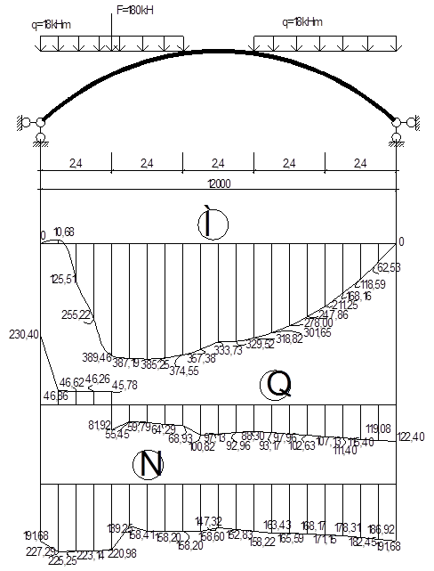 Додаток А. Графічний матеріал роботи: Епюри внутрішніх зусиль для заданої арки