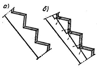 Рис. 7. Тетивы обыкновенной лестницы: а – с вырезами в тетивах; б – с прибитыми к тетивам накладками