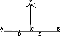 На рисунке показано как провести перпендикулярную линию к данной прямой (построение прямого угла). На земле проводится прямая линия АВ, в том месте где должен быть восстановлен перпендикуляр устанавливается колышек С, от которого по обе стороны отмеряют по произвольной равной линии, эти точки также отмечаются колышками DE. Приняв эти две последние точки за центры двух окружностей, радиусом равным DE описываются две дуги таким образом, чтобы они пересеклись. Точка пересечения F соединяется с прямой линией в точке С. Эта линия СF и будет исходный перпендикуляр (рис. 1).