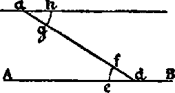 Проведение параллельных линий. К проведенной линии АВ нужно провести параллельную линию через точку а. На линии АВ отмечают какую-либо точку d и соединяют ее прямой линией с точкой а. На линии аd, из точки d описывают дугу произвольным радиусом df; точно таким же радиусом fg описывают окружность около точки a, как центра. На этой окружности от точки а отмеряют дугу, равную по длине дуге еf, и отмечают точку h. Соединив эту точку с точкой а и продолжив эту прямую в обе стороны, получим линию, параллельную de (рис. 3).