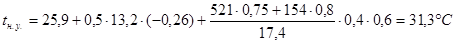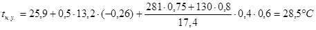 Теперь определим температуру, с которой воздух поступает в помещение от тепловой завесы по формуле