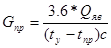 Gводы =244610/(4,187*106 *(130-70)*1)=0,000835 м3 /с