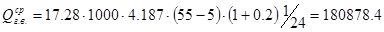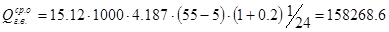 - коэффициент, учитывающий теплопотери подающими и циркуляционными стояками (0,2). Среднечасовой расход теплоты за сутки наибольшего водопотребления