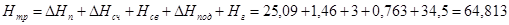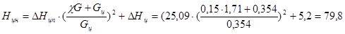 где D H п - потери напора в подающих трубопроводах системы горячего водоснабжения (25,09 м); D H сч - потери напора в водомере, м; H св - располагаемый свободный напор у смесителя ванны (3м); D H под — потери в водоподогревателе, м; Нг — геометрическая высота подъема воды от оси трубопровода на вводе до оси наиболее высоко расположенного водоразборного прибора (34,5 м).