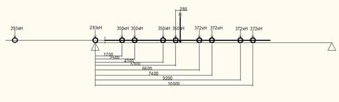 Для определения изгибающих моментов и поперечных сил необходимо определить наивыгоднейшее положение кранов. Определяем положение равнодействующей сил F1 ,F2 ,F3 ,F4 по отношению к колесу крана. Для этого сначала найдем расстояние от т. О до R. Расположим кран следующим образом: