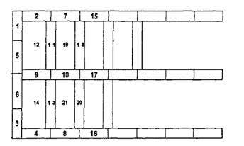 Элементы завозят заранее и размещают в комплекте на этаж в зоне монтажного крана. При этом создаются наилучшие условия для установки сборных элементов, так как они могут быть поданы под монтаж в любой последовательности. Сборку ведут по принципу образования замкнутых ячеек. Первой создают угловую ячейку или сначала монтируют элементы лестничной клетки. Монтируют торцевые маячные панели, затем устанавливают примыкающие панели стен и перегородок с образованием замкнутых ячеек, внутри которых монтируют межкомнатные перегородки и сразу укладывают плиты перекрытий. При таком методе монтажа требуется минимальное количество приспособлений для временного крепления элементов.