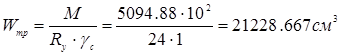 Требуемый момент сопротивления балки настила с учётом упругопластичной стадии работ:
