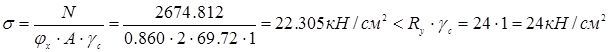 площадь смятия, равна площади плиты базы колонны,