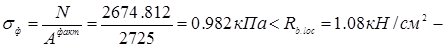 Фактическое напряжение в плите под фундаментом: