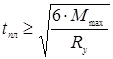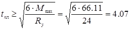 Толщину плиты определяем из условия её прочности на изгиб.