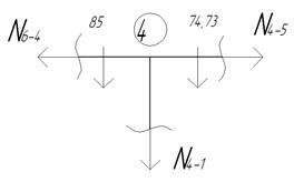 Производим расчет продольных сил действующих в раме: