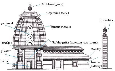 В своей основе тип индийского индуистского храма практически без изменений сохранился с 6-ого столетия нашей эры до нашего времени. Строительство храмов и на севере и на юге было подчинено канону, описанному в Самхитах, Агамах и иной регилиозной литературе, подробно регламентирующей все от выбора места до ритуала. Первоначально индийские храмы не были предназначены для большого количества верующих, возможно в числе прочего и из-за кастовых различий, что обусловило в большей степени на севере их незначительный размер.