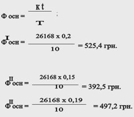 Фосн = К t / Т = 225762 Х 0,2 / 10 = 4515 грн