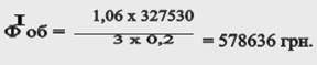 Фоб = V Х Сед Х 1,16 Х 1,06 / (n Х t) = 339738 Х 1,06 / (3 Х 2,6 мес.) = 50017 грн.