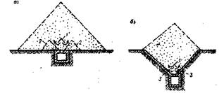 а - у відкритому штабельно-траншейному складі;