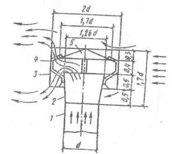 Дефлектор - це насадка, яка встановлюється на гирлі повітропроводу або шахти, або безпосередньо над вихідними отворами покриття, суміщеного з перекриттям промислової будівлі. Робота дефлектора відбувається з використанням енергії потоку повітря внаслідок дії вітру. Під час набігання вітрового потоку на дефлектор у лобовій його частині утворюється зона надлишкового тиску (приблизно 2/7 периметра), а в останній частині - зона розрідження, через що збільшується ефект видалення повітря із приміщення.