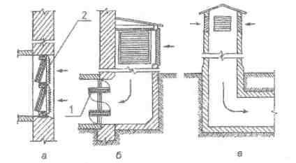 а - для подачі повітря; б - для видалення повітря; в - для перетікання повітря із одного приміщення в інше.