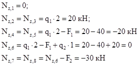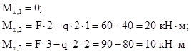 1. Намечаем характерные сечения, нумеруя их от свободного конца стержня к заделке.