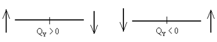 : условимся считать поперечную силу в сечении положительной, если внешняя нагрузка, приложенная к рассматриваемой отсеченной части, стремится повернуть данное сечение по часовой стрелке и отрицательной - в противном случае.