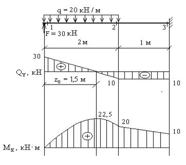 Правильность построения эпюры обеспечивается, в первую очередь, надлежащим выбором характерных сечений, то есть тех сечений, в которых величина внутреннего силового фактора обязательно должна быть определена.