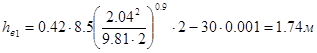 где Кш - коэффициент характеризующий шероховатость откоса принимаю укрепление откоса монолитным бетоном 0.9