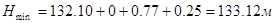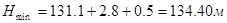 Принимаю минимальную отметку бровки подходной насыпи 134.40м.