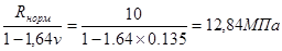 принимается равным 1,3. Так, например, для бетона со средним значением прочности R= 20 МПа и нормативным коэффициентом вариации V= 18,5% нормативные расчетные прочности будут равны: