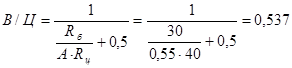 1. Определяем В/Ц по соотношению между прочностью и активностью